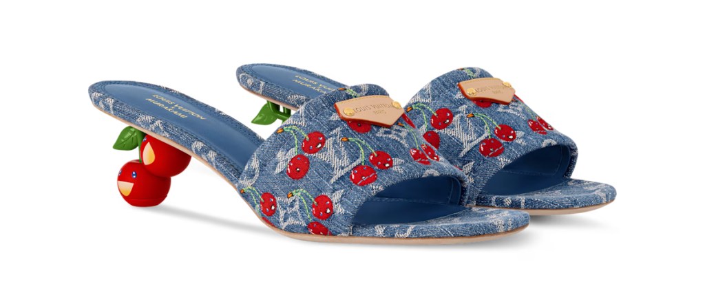 Monogram cherry denim. Leather signature patch. LV x TM heel, 5.5cm/2.2 inch (Priced at $1,460.00).